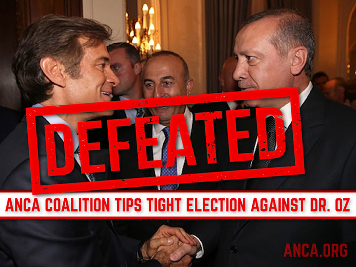 Ο ιστότοπος της επιτροπής αναφέρει ότι συνασπισμός υπό την ηγεσία της Αρμενικής Εθνικής Επιτροπής της Αμερικής (ANCA), ο οποίος περιλάμβανε ελληνικές, εβραϊκές, κουρδικές και άλλες κοινοτικές οργανώσεις στις Ηνωμένες Πολιτείες, κατάφερε να αποτρέψει την εκλογή στη Γερουσία των ΗΠΑ, του πολιτικού Μεχμέτ Οζ από την Πενσιλβάνια.