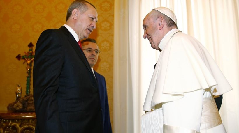 Ο Ερντογάν είχε έλθει σε αντιπαράθεση με τον ποντίφικα, το 2015, όταν ο επικεφαλής της Ρωμαιοκαθολικής Εκκλησίας μίλησε δημοσίως για τη «γενοκτονία» των Αρμενίων. Ωστόσο οι δύο άνδρες φαίνεται πως βρήκαν κοινό έδαφος συνεννόησης στο θέμα της Ιερουσαλήμ, όταν συνομίλησαν στο τηλέφωνο μετά τις ανακοινώσεις του Αμερικανού προέδρου τον Δεκέμβριο. Σε αυτήν την τηλεφωνική επικοινωνία είχαν συμφωνήσει ότι οποιαδήποτε αλλαγή στο καθεστώς της πόλης θα πρέπει να αποφευχθεί.