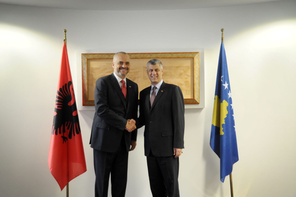 Ο πρόεδρος του Κοσσυφοπεδίου Χασίμ Θάτσι συναντήθηκε με τον πρωθυπουργό της Αλβανίας, Έντι Ράμα. Στη σελίδα του στο Facebook ο Θάτσι έγραψε ότι με τον Ράμα μίλησε για την αναγκαιότητα του ανοίγματος των συνόρων μεταξύ Κοσσυφοπεδίου και Αλβανίας και τη δημιουργία ενός αλβανικού χώρου χωρίς σύνορα, κάτω από την ευρωατλαντική ομπρέλα.