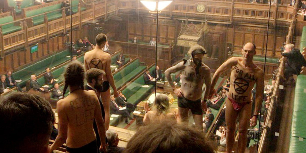 Μια ομάδα ημίγυμνων διαδηλωτών κατά της κλιματικής αλλαγής προκάλεσε αναστάτωση σήμερα στο βρετανικό κοινοβούλιο, καθώς επιδείκνυαν τα γυμνά τους κορμιά, την ώρα που οι βουλευτές προσπαθούσαν, μάταια, να επικεντρωθούν στη συζήτηση που βρισκόταν εκείνη την ώρα σε εξέλιξη για το Brexit.