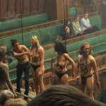 Ορισμένοι βουλευτές δεν μπορούσαν να τραβήξουν το βλέμμα τους από τον εξώστη για το κοινό, όπου εξελισσόταν η γυμνή διαμαρτυρία