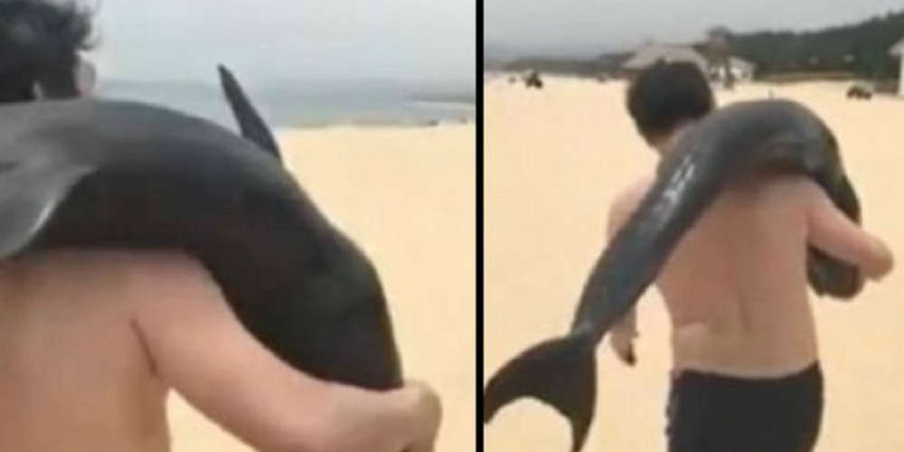 Ανθρωποκυνηγητό για τη σύλληψη ενός άνδρα στην Κίνα ο οποίος φόρτωσε στον ώμο του ένα ετοιμοθάνατο δελφίνι και το απομάκρυνε από παραλία του νοτίου προαστίου Κουανγκτούνγκ. Το ασυνήθιστο περιστατικό έχει μάλιστα καταγραφεί μέσω κάμερας.