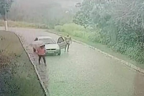 Στο βίντεο φαίνεται μία γυναίκα να περπατάει σε έναν ερημικό δρόμο κρατώντας την ομπρέλα της, όταν ένα όχημα την προσπερνάει και σταματάει λίγο πιο μπροστά.