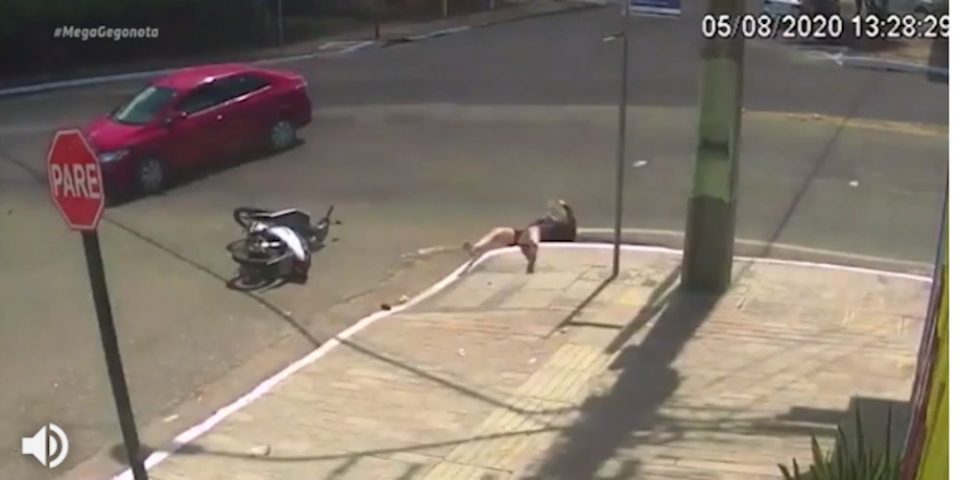 Μέσα σε φρεάτιο βρέθηκε μια νεαρή γυναίκα στη Βραζιλία μετά την σύγκρουσή της με αυτοκίνητο. Όπως κατέγραψε κάμερα ασφαλείας το αυτοκίνητο στρίβει προς τα αριστερά και συγκρούεται με το μηχανάκι της 27χρονης η οποία από την ταχύτητα που είχε πέφτει στο οδόστρωμα και σέρνεται μέχρι που καταλήγει μέσα στο φρεάτιο του δρόμου.