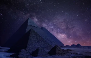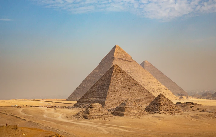 Το συγκρότημα της Γκίζας, δυτικά του Καΐρου, περιλαμβάνει τις πυραμίδες του Χέοπα, του Χεφρήνου και του Μυκερίνου, καθώς και τη Μεγάλη Σφίγγα. Όλα τα μνημεία παραμένουν καλυμμένα με μυστήριο, λόγω των ασαφών μεθόδων κατασκευής τους, της ακριβούς αστρονομικής τους ευθυγράμμισης και του αμφιλεγόμενου σκοπού τους.
