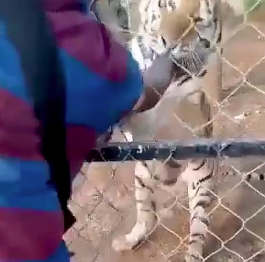 Το περιστατικό συνέβη μπροστά από το κλουβί της τίγρης, σε ιδιωτικό ζωολογικό κήπο του Περιμπάν στο Μεξικό. Ένας από τους φύλακες αφού τάισε την τίγρη πλησίασε τα σύρματα του κλουβιού της και προσπάθησε να χαϊδέψει το τεράστιο αιλουροειδές.