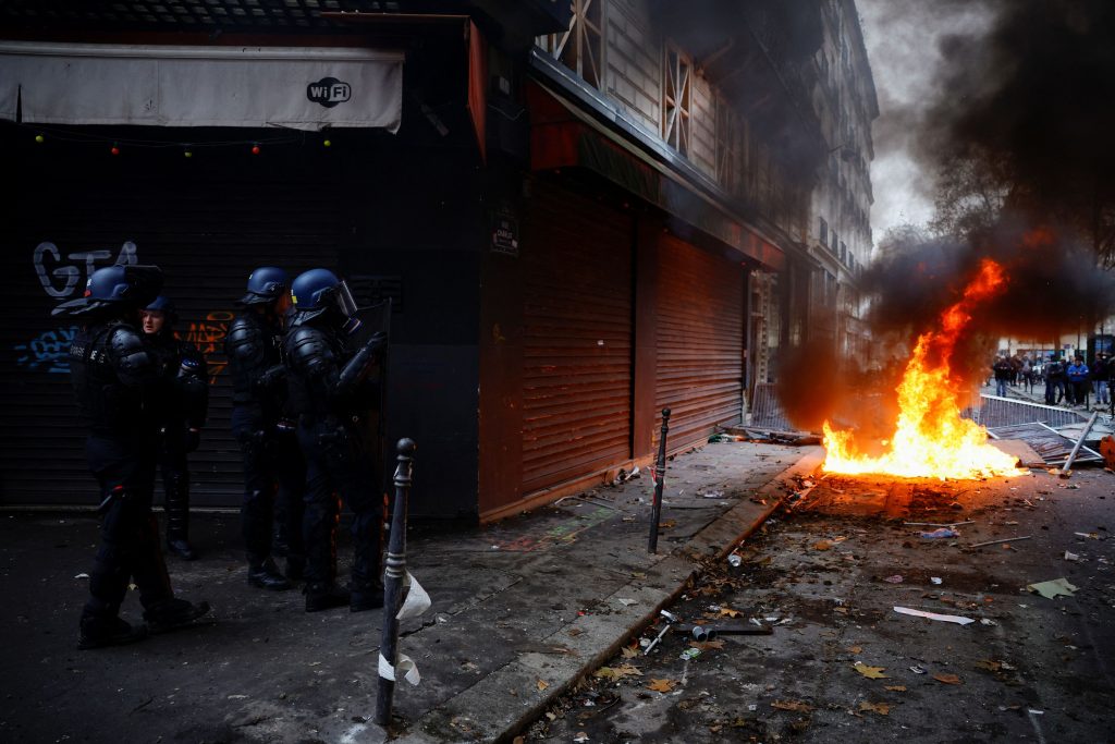 Οι Κούρδοι διαδηλωτές αναποδογύρισαν αρκετά αυτοκίνητα, ενώ μικρές φωτιές ξέσπασαν γύρω από την Πλατεία Δημοκρατίας που αποτελεί το παραδοσιακό τοπόσημο της γαλλικής πρωτεύουσας για την πραγματοποίηση διαδηλώσεων, καθώς οι Κούρδοι είχαν νωρίτερα πραγματοποιήσει μία ειρηνική διαμαρτυρία.