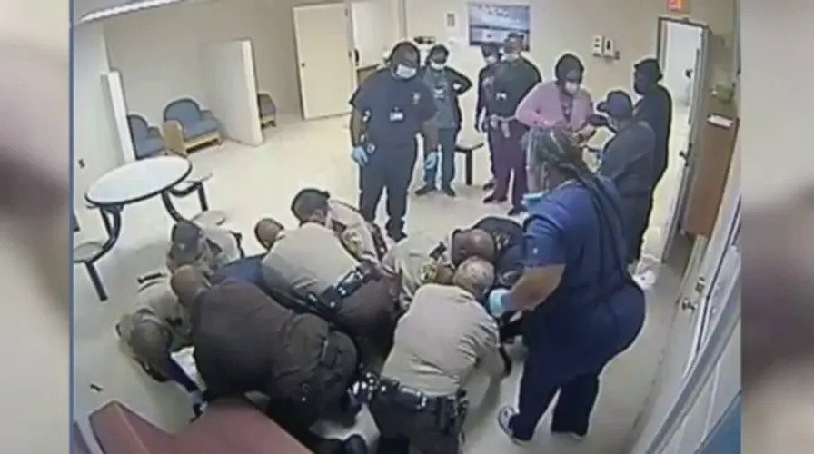 Βίντεο δείχνει έναν ψυχικά ασθενή μαύρο άνδρα ο οποίος πέθανε από ασφυξία – Πολλοί αστυνομικοί και ιατρικό προσωπικό βρίσκονταν από πάνω του ακινητοποιώντας τον.