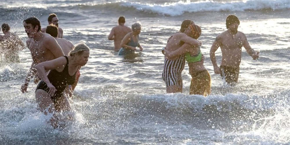 ‘Όπως επιβάλλει το έθιμο, οι χειμερινοί κολυμβητές -και όχι μόνο- μπήκαν με θάρρος στα νερά, η θερμοκρασία των οποίων δεν ξεπερνούσε τους 7 βαθμούς. Μόνο στο Σεβενίνγκεν, στα προάστια της Χάγης, 10.000 άνθρωποι βούτηξαν στα νερά.