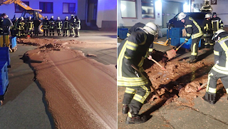 Οι πυροσβέστες στην πόλη Βερλ της δυτικής Γερμανίας κλήθηκαν να αντιμετωπίσουν μια ασυνήθιστη επείγουσα κατάσταση αφού μια δεξαμενή ενός τοπικού εργοστασίου υπερχείλισε, πλημμυρίζοντας τον δρόμο με υγρή σοκολάτα.