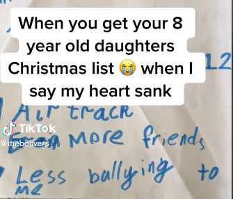 Η λίστα συμπεριλάμβανε κι άλλα πράγματα, όπως ένα Apple Pencil και ένα iPhone, όμως στο τέλος της το κορίτσι ζητούσε από τον Άγιο Βασίλη «περισσότερους φίλους» και «λιγότερο bullying σε εμένα».