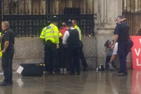 «Ένας άνδρας δίπλα μου στις πύλες του Κοινοβουλίου φαίνεται ότι περιλούστηκε με κάτι που μύριζε σαν βενζίνη. Απίστευτα θαρραλέα αντίδραση της αστυνομίας που τώρα τον συνδράμει », έγραψε στο Twitter ο βουλευτής Χιου Μέριμαν.