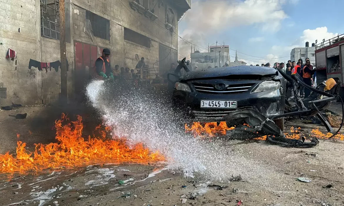 Πλάνα που έδωσαν στη δημοσιότητα οι Ισραηλινοί δείχνουν την αεροπορική επιδρομή κατά του αυτοκινήτου στο οποίο επέβαιναν τα τρία στελέχη της Χαμάς.
