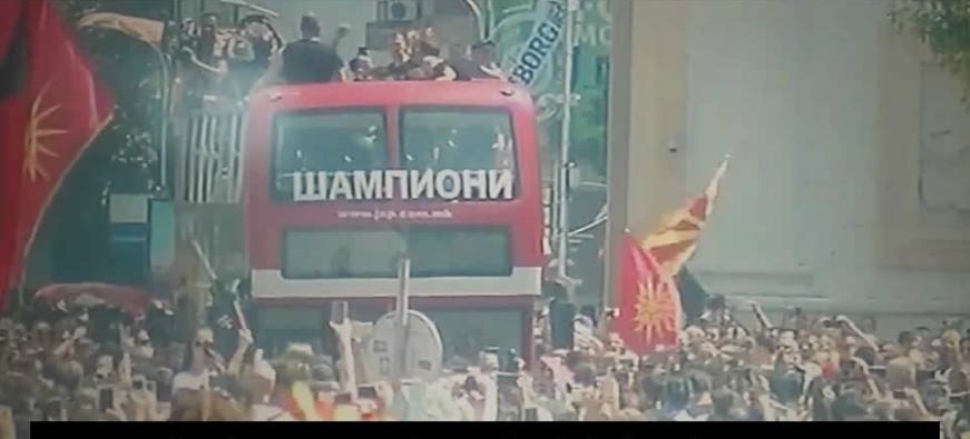 Μπροστά από ένα ξενοδοχείο στην Κολωνία της Γερμανίας, Σκοπιανοί οπαδοί γιόρταζαν τη νίκη της ομάδας χάνμπολ «Vardar», Σκοπίων, που κέρδισε το Τσάμπιονς Λιγκ το οποίο διεξήχθη στο «Lanxess Arena».