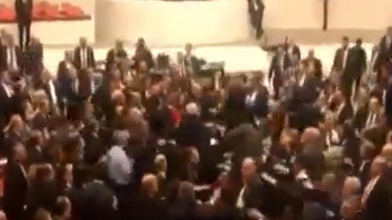 Σκηνές άνευ προηγουμένου εκτυλίχθηκαν στη Βουλή της Τουρκίας, καθώς βουλευτές πιάστηκαν στα χέρια.