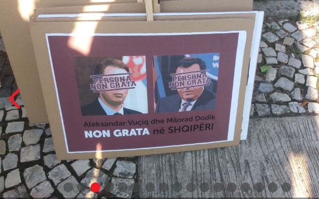Με το σύνθημα «Βούτσιτς και Ντόντικ- Persona non Grata» τα μέλη του κινήματος της Αυτοδιάθεσης και δεκάδες πολίτες συγκεντρώθηκαν στη λεωφόρο «Μαρτύρων του Έθνους» στα Τίρανα για να διαμαρτυρηθούν για την επίσκεψη του Σέρβου προέδρου, Αλεξάνταρ Βούτσιτς και του ομολόγου του της Δημοκρατίας Σέρπσκα της Βοσνίας Ερζεγοβίνης, Μίλοραντ Ντόντικ.