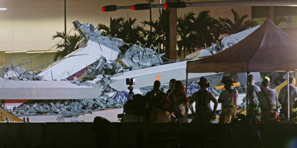 Η κατάρρευση της πεζογέφυρας σε έναν αυτοκινητόδρομο κοντά στο Διεθνές Πανεπιστήμιο της Φλόριντα άφησε πίσω της τουλάχιστον τέσσερις νεκρούς και εννέα τραυματίες, όπως ανακοίνωσε πριν μερικές ώρες ο επικεφαλής της πυροσβεστικής υπηρεσίας της κομητείας Μαϊάμι-Ντέιντ.
