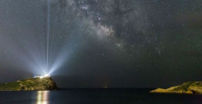 Αν και αυτό μπορεί να δείχνει σαν φάρος, οι ακτίνες του φωτός στον ορίζοντα στην πραγματικότητα προέρχονται από το Ναό του Ποσειδώνα στο Σούνιο.