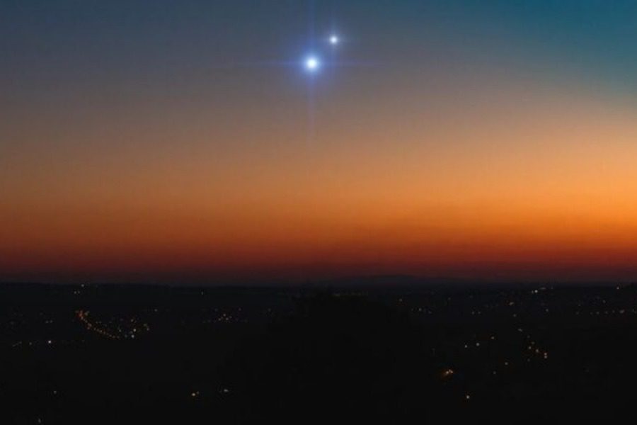 Το φαινόμενο θα ξεκινήσει τη Δευτέρα (21/12), όταν οι δύο μεγαλύτεροι πλανήτες του ηλιακού συστήματος θα εμφανιστούν δίπλα-δίπλα σε μια «υπέροχη σύζευξη» πάνω από τον ορίζοντα αμέσως μετά το ηλιοβασίλεμα.